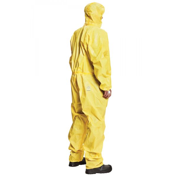 Герметичний комбінезон хімічного захисту CHEMSAFE SHIELD з термозаклеєними швами, виготовлений з ламінованого поліпропілену. Призначений для захисту працівника від небезпечних хімічних речовин, крім газів. Може використовуватись для захисту чутливих продуктів та/або процесів від забруднення людиною.