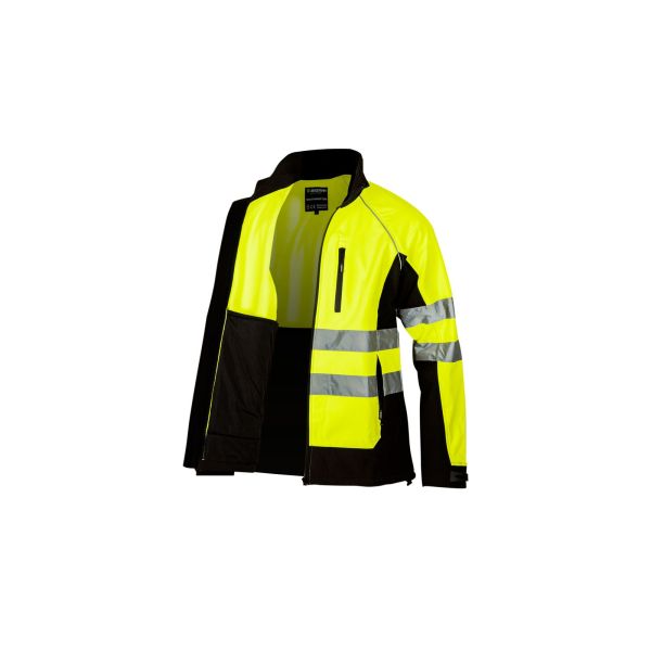Современный, удобный, функциональный дизайн куртки флуоресцентного лимонного цвета, со светоотражающими полосами (с высокой степенью отображения 2-го класса)