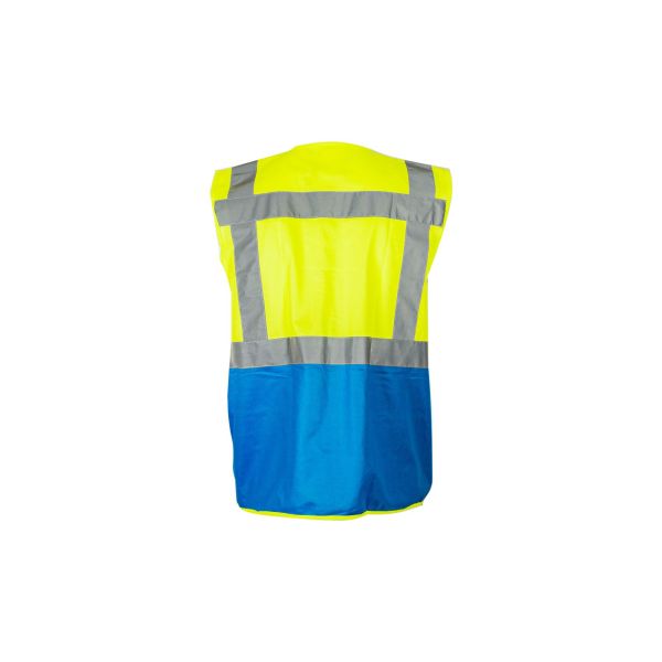 • Легкий, универсальный жилет лимонно-голубого цвета, со светоотражающими полосами (высокая степень отражения 2-го класса)