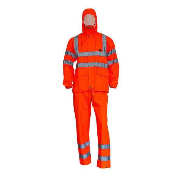- Костюм сигнального оранжевого цвета комплектуется курткой и брюками.