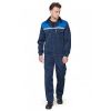 Костюм состоит из куртки и полукомбинезона. Основной цвет синий, кокетка и канты - васильковые, обработка - светло-серого цвета.