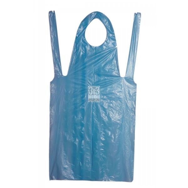 Одноразовий фартух з нагрудником, виготовлений з поліетилену, розмір універсальний (71*136 см). Доступний до замовлення в двох кольорах: білий чи блакитний. Продається пачками по 100 шт, ціна вказана за пачку.