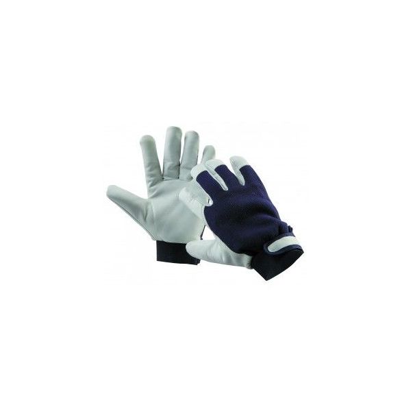 Робочі зимові комбіновані рукавички PELICAN BLUE WINTER з козиної шкіри та синьої бавовни.