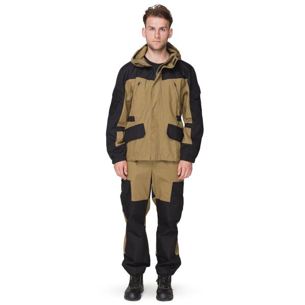Костюм Горка состоит из куртки и брюк. Цвета: основной - оливковый, отделка - черный.