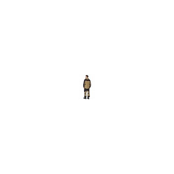 Капюшон вшивной без воротника, по краю и в центре с кулисами со шнуром и фиксаторами. В районе талии с двух сторон, а также на рукавах, в районе локтевого сустава, размещены кулисы с внутренней эластичной тесьмой. Низ куртки со шнуром и фиксаторами.