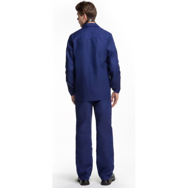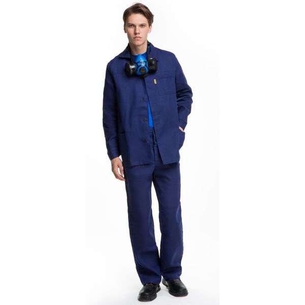 Штани та куртка костюма це комплект бавовняного спецодягу широкого застосування. Для посилення захисту робітника та зменшення зносу костюма в колінних та ліктьових секторах нашиті додаткові ущільнюючі накладки. Три кишені, застібка на ґудзиках у центрі куртки. Хороша вентиляція, інші, зазвичай притаманні бавовні, переваги тканини, стійкість до іскор.
